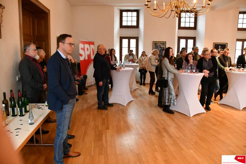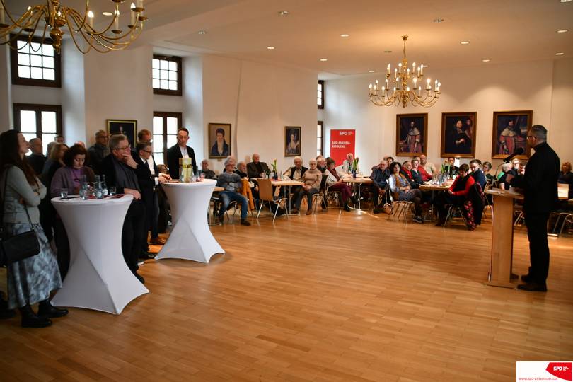 Viel Zuspruch fand der diesjährige Neujahrsempfang des SPD-Ortsvereins. Im Festsaal des Schlosses von der Layen begrüßte der Mathias Knerr als Vorsitzender des Ortsvereins zahlreiche Ehrengäste, u.a. Thorsten Rudolph als Mitglied des Haushaltsausschusses im Bundestag, Marko Boos seit 19 Tagen unser neuer Landrat, den Generalsekretär der SPD Rheinland-Pfalz Marc Ruhland, Herrn Dr. Alexander Wilhelm den Geschäftsführer des Landeskrankenhauses, Max Mumm als Verbandsbürgermeister der Nachbar-VG Maifeld sowie die Ortsbürgermeister Martin Dötsch aus Kobern-Gondorf, Christian Schuth aus Brey und Arnold Waschgler aus Lehmen.